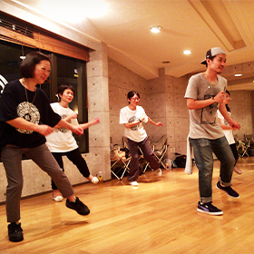 レッスンについてマイペースに気さくな講師とダンスにチャレンジ! 一人一人のレベルだけでなく筋力量や柔軟性も確認しながらアプローチを行うので、無理 なくお過ごしいただけます。その日1つでも多く変化や達成を実感いただけるよう経過と 個人のペースを大切にしています。リラックス感があるアットホームなレッスンをお楽しみください。